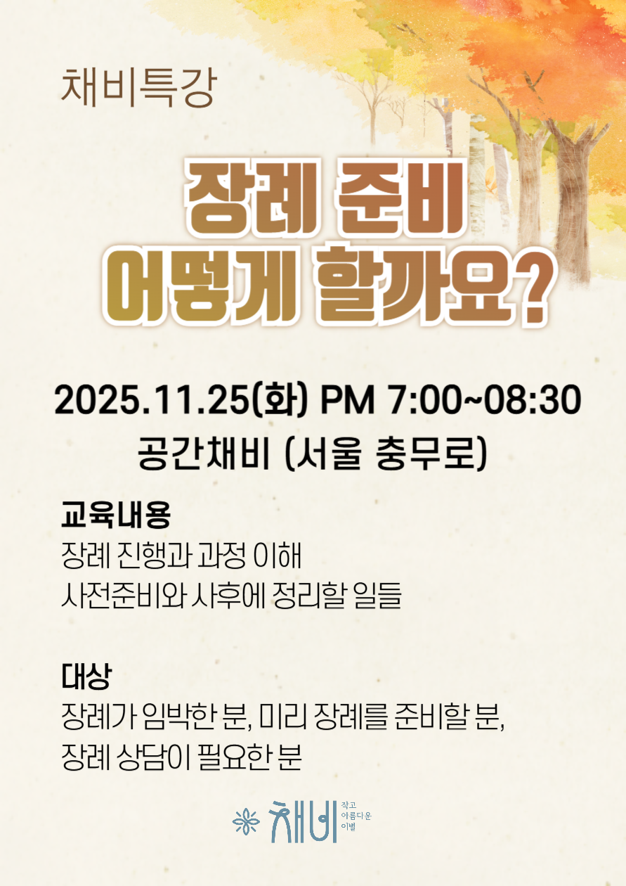 채비 추모식은 오로지 고인에게 집중할 수 있는 애도와 위로의 아름다운 장례식입니다.